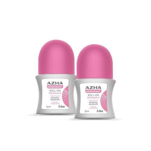alba pharma - مزيل العرق رول أون للتبييض باللون الأرجواني العميق يؤخر نمو الشعر من أزها عبوتين 120ملي 1+1، للجنسين، البا فارما