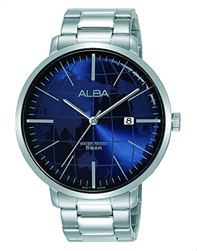 Alba - ساعة ستانلس ستيل مقاومة للماء دائرية انالوج بعقارب للرجال برستيج من البا AS9J83X - فضي