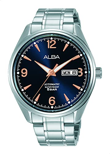 Alba - ساعة برستيج انالوج بعقارب بسوار من الستانلس ستيل للرجال البا - لون فضي وكحلي