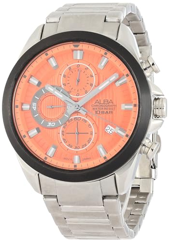 Alba - ساعة اكتيف AM3783X1 من البا بسوار ستانلس ستيل بعرض انالوج بعقارب فرعية وارقام رومانية وسوار الستانلس للرجال - اللون فضي واحمر