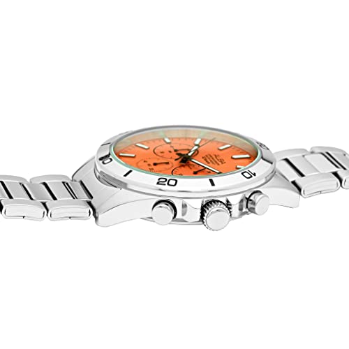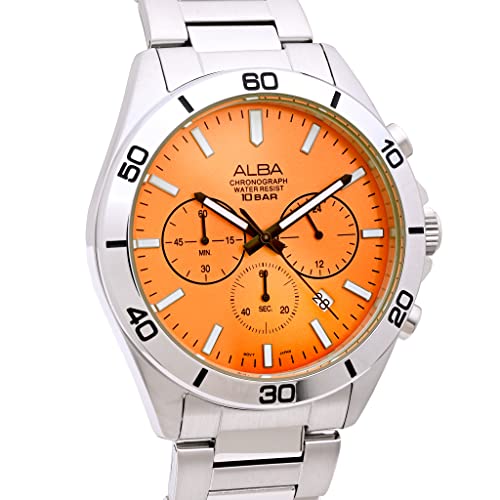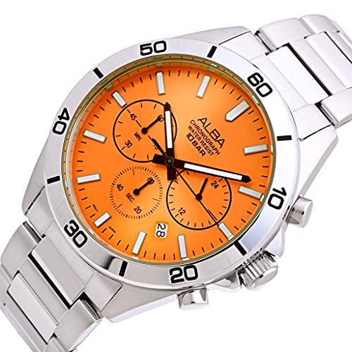 Alba - ساعة يد انالوج بعقارب اكتيف بسوار ستانلس ستيل للرجال من البا - فضي وبرتقالي