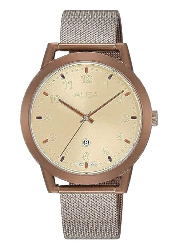 Alba - ساعة للنساء بنظام حركة كوارتز شاشة أنالوج، سوار مصنوع من الفولاذ المقاوم للصدأ من البا، لون ذهبي وردي، AH7Z55X