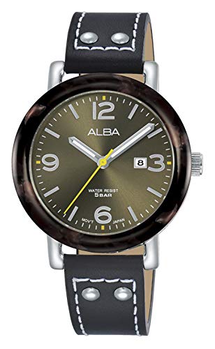 Alba - ساعة جلد بتصميم كاجوال للنساء من البا، موديل AH7P43X- اسود، انالوج بعقارب