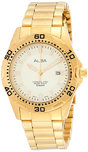 Alba - ساعة رسمية بسوار ستانلس ستيل للنساء من البا، موديل AH7J36X، انالوج، بمينا ذهبي