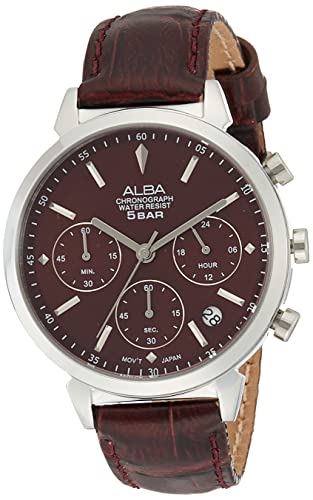 Alba - ساعة بمينا حمراء وسوار جلد احمر للنساء، موديل AT3H45X من البا, أحمر، انالوج
