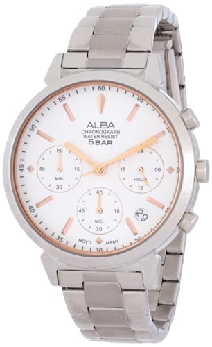 Alba - ساعة بمينا ابيض وفضي وسوار ملفوف من الجانبين الستانلس ستيل للنساء البا موديل AT3H43X فضي انالوج