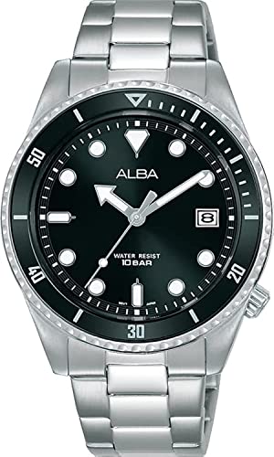 Alba - ساعة اكتيف بتصميم انالوج مع مينا سوداء وسوار ستانلس ستيل للرجال من البا - موديل AG8L47X1, أسود