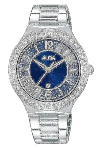 Alba - ساعة يد انالوج عصرية بمينا بلون ازرق وسوار من الستانلس ستيل للنساء البا موديل AH7Z93X1 أزرق