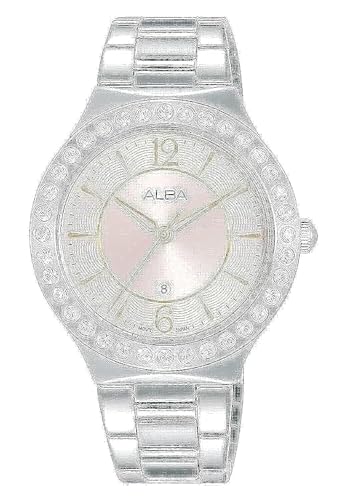 Alba - ساعة انالوج عصرية مصممة بمينا بينك وسوار ستانلس ستيل للنساء من البا - AH7Z95X1 ال.بينك وردي
