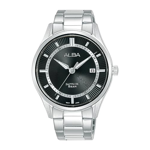 Alba - البا ساعة بسوار ستانلس ستيل للنساء من برستيج ومينا اسود منقوش AS9R19X