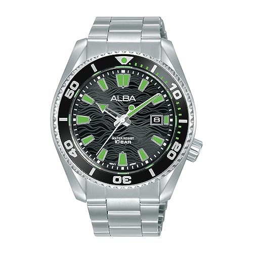 Alba - البا ساعة اكتيف للرجال بسوار من الستانلس ستيل ومينا اسود منقوش AS9R75X