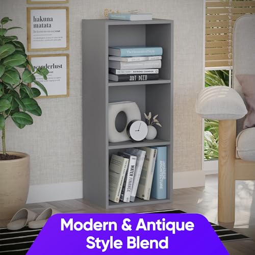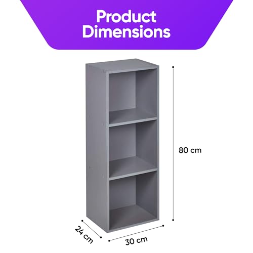 Albert Austin - وحدة رفوف للتخزين المكعب للأرفف من 1-2-3-4 طبقة بتصميم خزانة كتب مكعبة ووحدة رفوف عرض وتخزين للمكتب وديكور غرفة المعيشة من البيرت اوستن (رمادي، 3 طبقات)