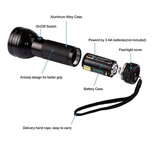 Albinaly - مصباح ليد يدوي بالأشعة فوق البنفسجية، جهاز كشف عن بقع بول الكلاب والحيوانات الأليفة وبق الفراش من البينالي، 51 ليد