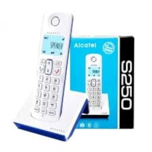 Alcatel - تليفون ارضي لاسلكي من الكاتيل S250 يحتوي على مكبر صوت/شاشة مضيئة/خاصية التعرف على المتصل/ذاكرة لـ50 رقم/زر اعادة الاتصال/زر لتحديد مكان السماعة/10 رنات مختلفة/تحكم في شدة صوت الرنة/ زر كتم الصوت