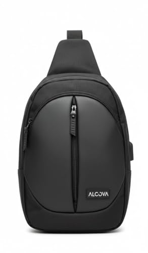 ALCOVA - شنطة ظهر سلينج من الكوفا، لون اسود، تصميم كروس مع منفذ شحن USB