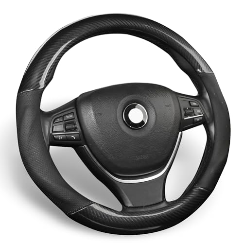 ALEMODR - المودر غطاء عجلة قيادة عالمي من الجلد والالياف الكربونية مقاس 15 انش