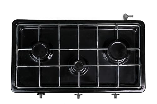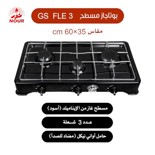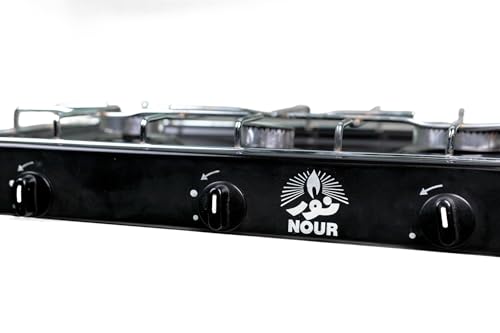 NOUR - بوتجاز غاز مسطح نور من الايناميلد، 3 شعلة، حامل اواني نيكل- اسود