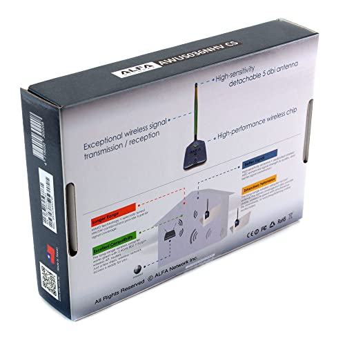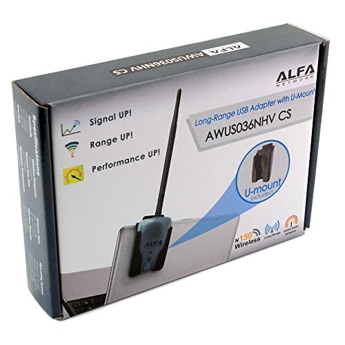 ALFA Network - واي فاي USB AWUS036NHV 150Mbp/s 2.4 جيجا هرتز دونجل مع هوائي RP-SMA قابل للفصل 5 ديسيبل من الفا