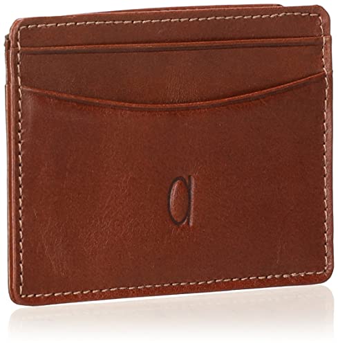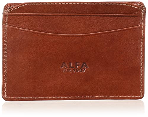 Alfa Leather Co. - محفظة جلد لكروت الائتمان بشعار امامي للرجال من الفا ليذر كو - بني