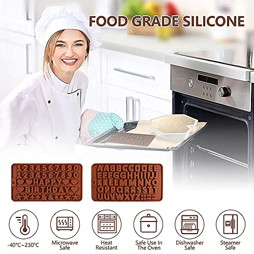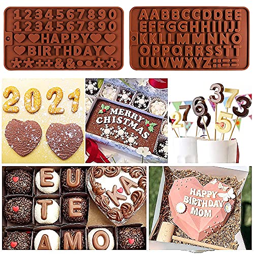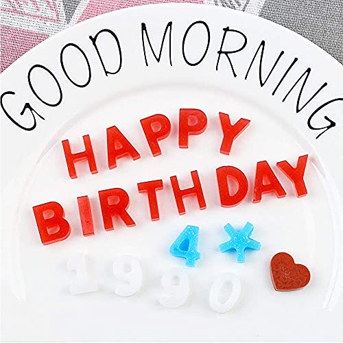 ALHX - قوالب شوكولاتة سيليكون بتصميم أحرف وأرقام، قوالب حلوى جيلاتينية، قوالب سيليكون بتصميم حروف وأرقام وعبارة "Happy Birthday"، قوالب للحرف اليدوية والشمع والصابون والزينة من ايه ال اتش اكس، 6 قطع