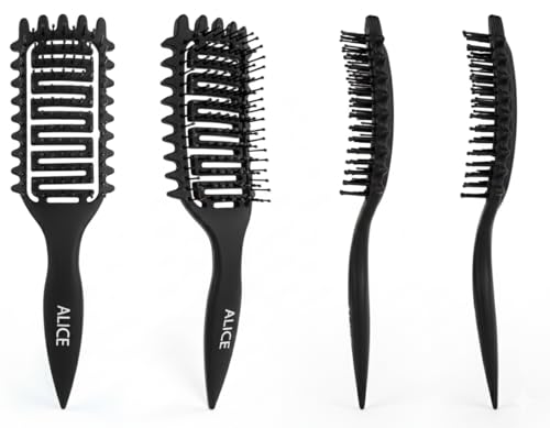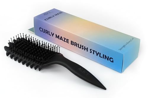 Generic - فرشاة لتصفيف الشعر المجعد، فرشاة فك تشابك الشعر الرطب والجاف، الأداة الأساسية لتشكيل وتصفيف تجعيدات شعرك، للحصول على تحديد مثالي من اليس (أسود)