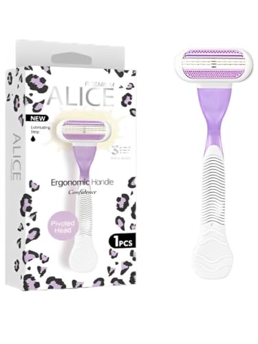Generic - ماكينة حلاقة بريميوم للنساء بمقبض مريح ورأس محوري مع شريط تشحيم جديد للبشرة العادية من اليس، أرجواني وأبيض، قطعة واحدة (شفرة ثلاثية، موديل AS-22)