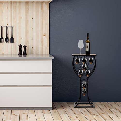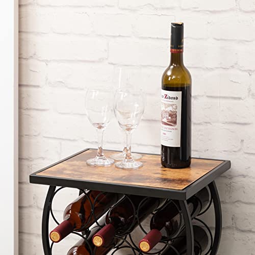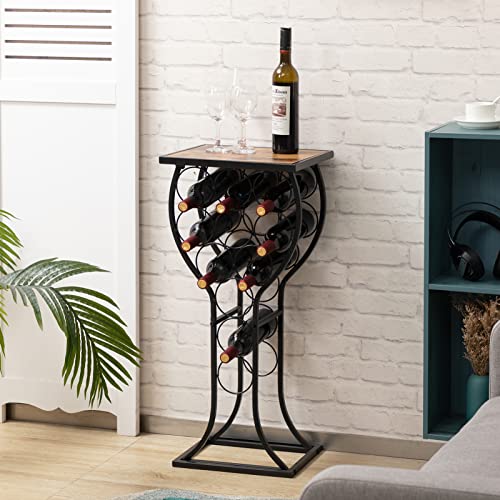 ALIMORDEN - اليموردين طاولة كونسول مكونة من 11 زجاجة، رف مشروبات قائم بذاته، منظم تخزين زجاج النبيذ، رف عرض للمساحات الصغيرة، قشرة رخامية علوية، بني