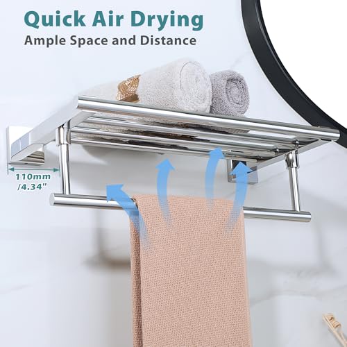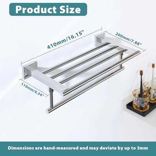 - 【مصنوع من الستانلس ستيل SUS304]】رف المناشف مصنوع من الستانلس ستيل SUS304 عالي الجودة؛ تتميز مادة الستيل عالية الجودة بصلابة عالية ومقاومة للتآكل والصدأ، خصائص قوية ومتينة تضمن عمر خدمة طويل.