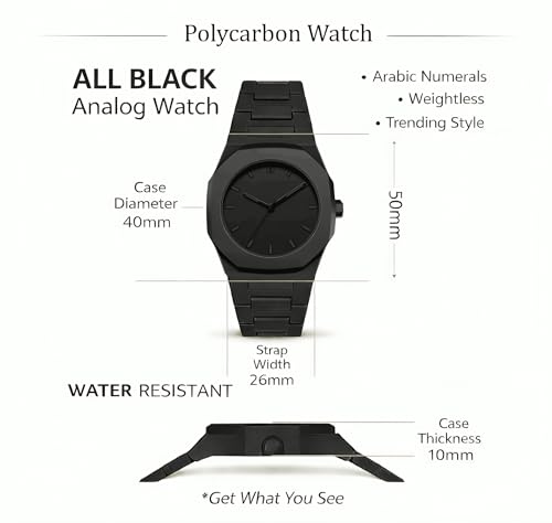 Generic - ساعة بلون اسود من الكربون | تصميم انيق بسيط - هيكل خفيف الوزن | مثالية للارتداء اليومي والرسمي