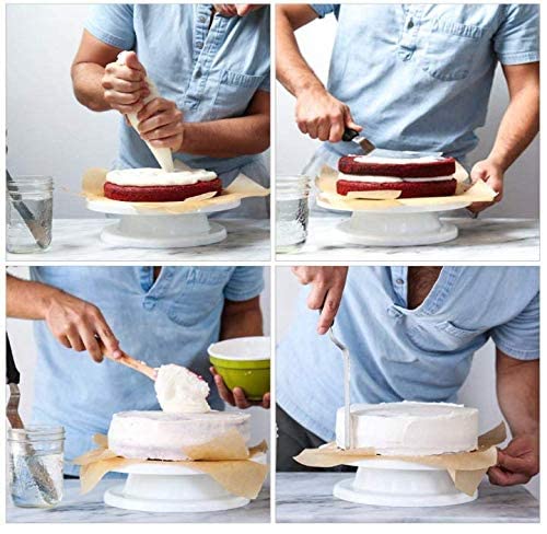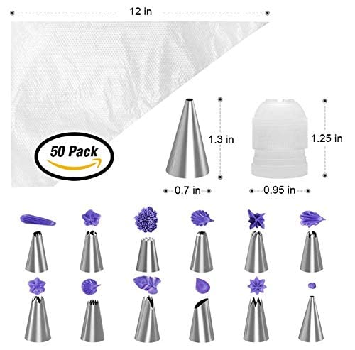 Other - لوازم تزيين الكيك الكل في واحد مع قرص دوار للكعك، 12 طرف تزيين الكيك، 2 ملعقة للتزيين، 3 تنعيم التزيين، 50 كيس معجنات للاستعمال مرة واحدة، مجموعة أدوات تزيين الكيك