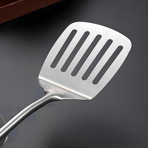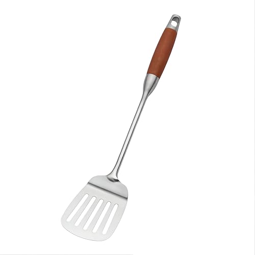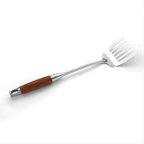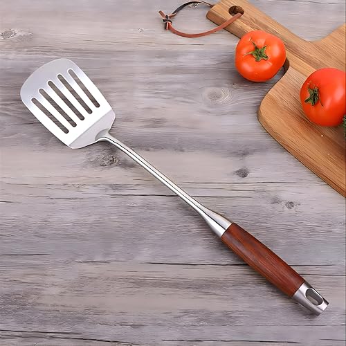 Generic - ملعقة مطبخ الكل في واحد - ملعقة مسطحة مشقوقة من الستانلس ستيل مع مقبض خشبي للخبز والشواء والقلي والتقليب، قبضة مريحة تدوم طويلا