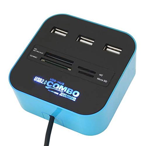 Combo - قارئة بطاقات مضيئ متعدد ، الجميع في واحد، مع 3 منافذ يو اس بي 2.0 في قاعدة كومبو سيكيور ديجيتال/ام ام سي/ ام2/ ام اس