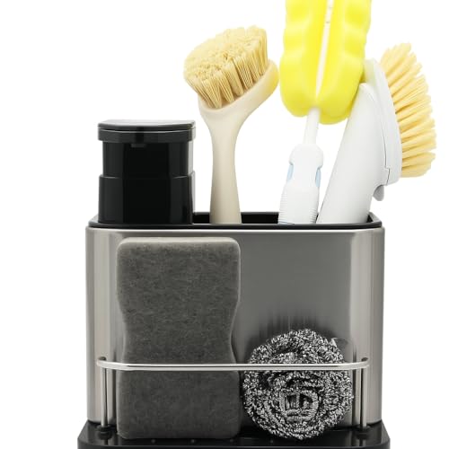 - تصميم عملي 3 في 1 لتحقيق أقصى قدر من التنظيم: يجمع بين توزيع الصابون وتخزين الإسفنج وتجفيف الأواني في وحدة واحدة أنيقة من الستانلس ستيل. حافظ على حوض المطبخ نظيفًا وخاليًا من الفوضى مع توفير المساحة. مثالي للمنازل العصرية التي تبحث عن الكفاءة والأناقة في كل التفاصيل.