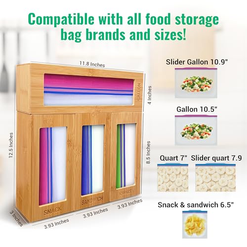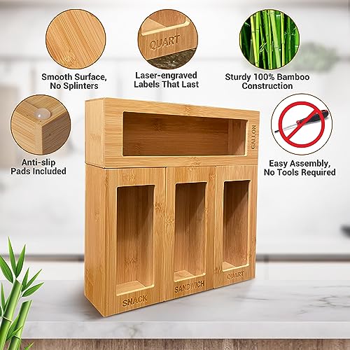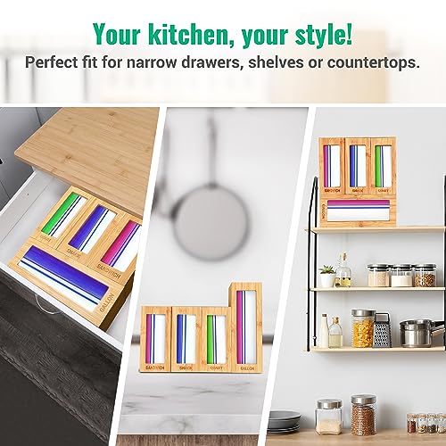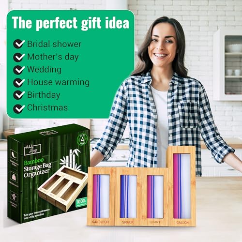 All Luxy - منظم أكياس زيبلوك من الخيزران لتنظيم وترتيب أدراج المطبخ لأكياس الساندويتشات من اول لوكسي