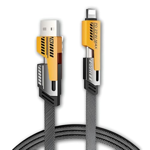 Generic - كيبل شحن متعدد المنصات - كيبل USB 4 في 1 بقدرة 65 واط مصمم لسرعة مزامنة الطاقة والبيانات بين جوالات ايفون واندرويد (قطعتين)