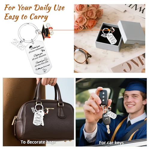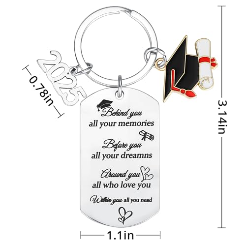 Allaugh - سلسلة مفاتيح هدايا التخرج للرجال: هدية التخرج من المدرسة الثانوية وكبار السن من الكلية فئة 2025 - سلسلة مفاتيح شخصية أفكار هدايا الطلاب للبنات والأولاد والعائلة، فضي، مقاس عالمي