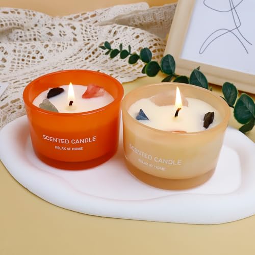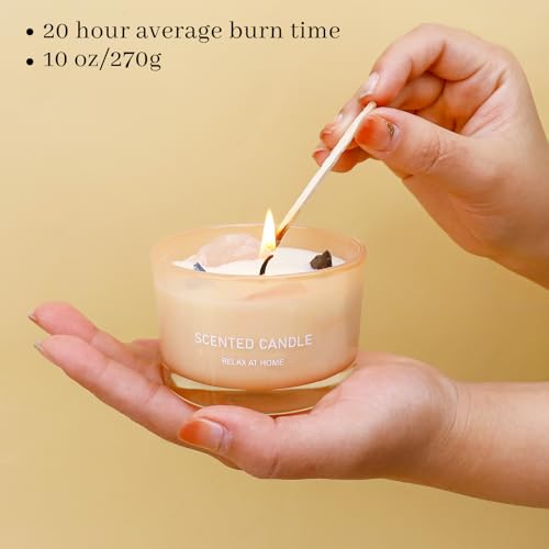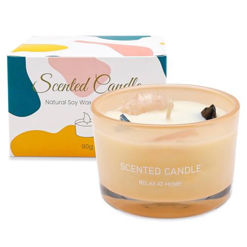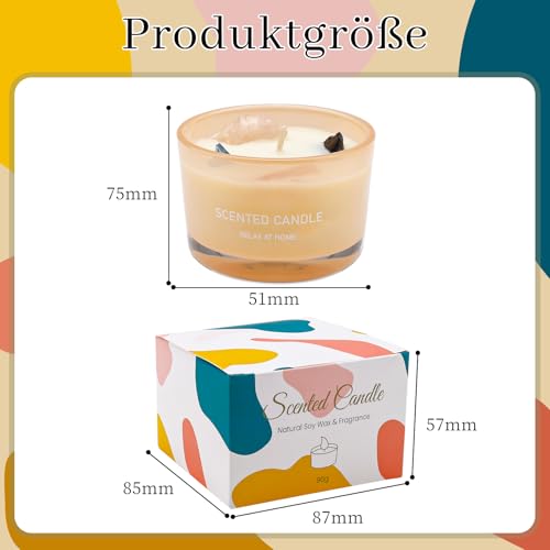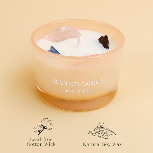 ALLAVA - شموع معطرة في كأس زجاجي من الافا، شمعة معطرة بالفواكه، شمعة معطرة مع حجر كريستال، شمعة شمع الصويا الطبيعي مصنوعة يدويا، وقت احتراق يصل إلى 20 ساعة (رائحة الفاكهة، 270 جرام)