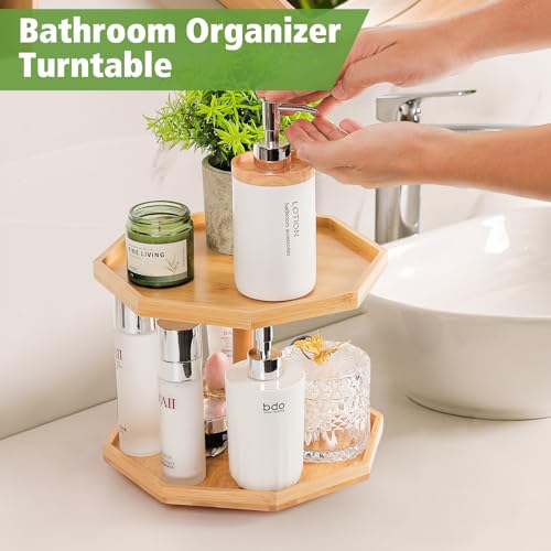 - ✅ 【منظم متعدد الأغراض】منظم طاولة الحمام الدوار هذا ينظم بدقة الكثير من العناصر، من الزجاجات الكبيرة حتى البرطمانات الصغيرة. استخدمه في الحمام لمستحضرات العناية الشخصية ومستحضرات التجميل ومنتجات العناية بالبشرة، أو في المطبخ للتوابل والعلب وزجاجات النبيذ، أو على طاولة القهوة في غرفة المعيشة للوجبات الخفيفة والمناديل.