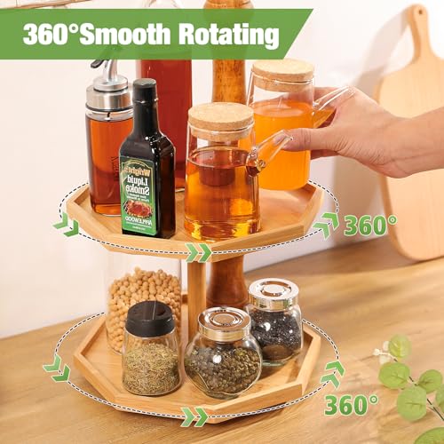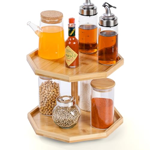 Allinside - حامل دوار ليزي سوزان ثماني الأضلاع 2 طبقة مقاس 25.4 سم من الخيزران بحواف مرتفعة من اول انسايد، رف توابل دوار لسطح المطبخ والخزانة وخزانة المؤن وطاولة الطعام (خيزران)