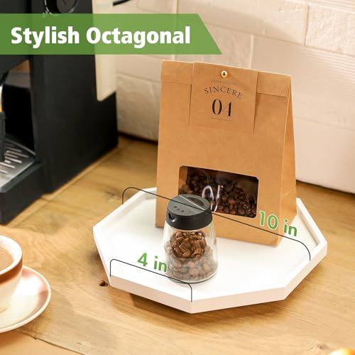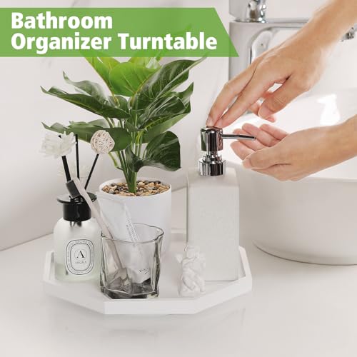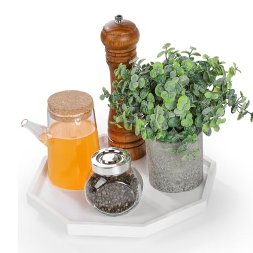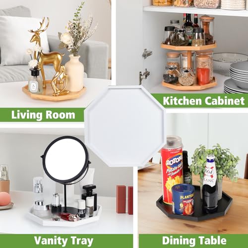 Allinside - اول ان سايد صينية تنظيم الحمام بتصميم ثماني الاضلاع من ليزي سوزان مقاس 10 انش مع حواف مرتفعة، رف توابل دوار لسطح المطبخ والخزانة وخزانة المؤن وطاولة الطعام (ابيض)