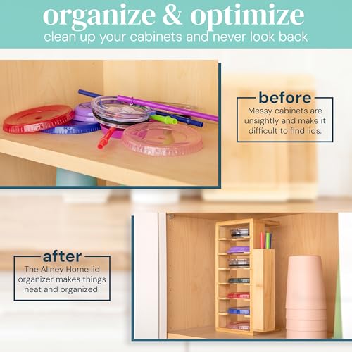 ALLNEY HOME - رف تخزين بغطاء اكواب من الخيزران قابل للتعديل من اولني هوم، بني، مقاسات متعددة؛ منظم المطبخ