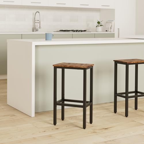 ALLOSWELL - كرسي بار للإفطار للمطبخ مع مسند للقدمين من الوسويل، كراسي طعام 65 سم، كراسي بار صناعية مستطيلة لغرفة الطعام والمطبخ، بني ريفي BAHR0101، 2 قطعة