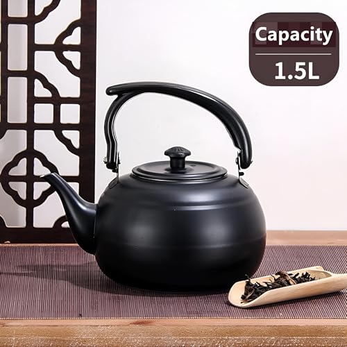 Generic - ابريق شاي من خليط معدني - ابريق شاي مريح 1.5 لتر مع مصفاة مدمجة وفوهة صب، لمسة نهائية سوداء مقاومة للحرارة، مصمم للفنادق والمطاعم والمنازل والمطابخ، اداء موثوق