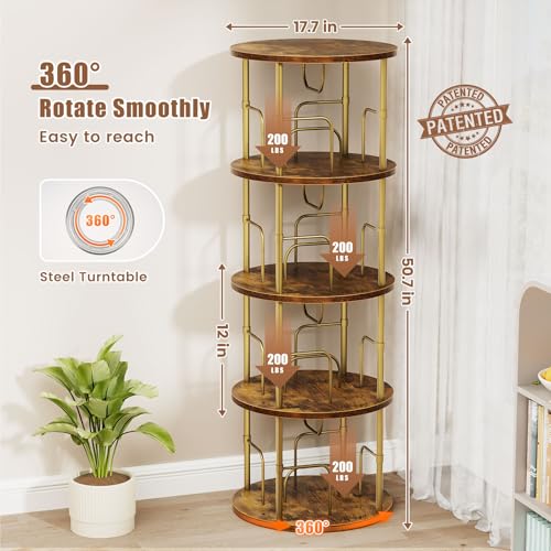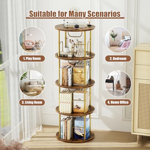 ALLSTAND - رف كتب دوار من اولستاند، رف كتب دوار من 4 طبقات، عرض 360 درجة، خزانة كتب دائرية فريدة من نوعها، منظم تخزين قائم على الارض للمساحات الصغيرة، مكتب دراسة منزلي، ذهبي