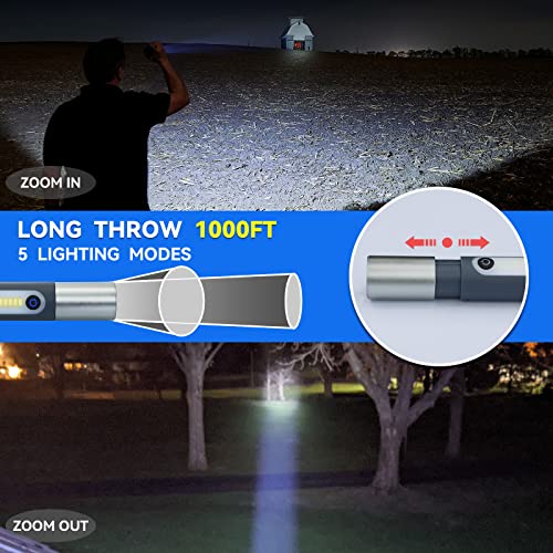 ALLYES - مصباح يدوي ليد قابل لإعادة الشحن من اليز، قابل للتكبير بـ 4 أوضاع، متعدد الوظائف وبدرجة الحماية من الأتربة والماء IP65 للاستخدام في حالات الطوارئ والاستخدام الخارجي، اكسسوارات للتخييم