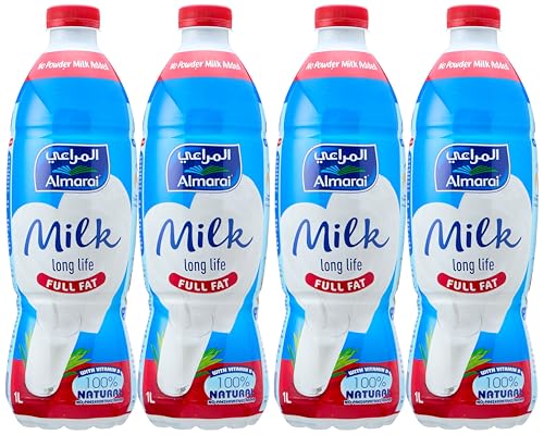 Almarai Milk PET - لبن سادة كامل الدسم من المراعي، 4 قطع، 1 لتر