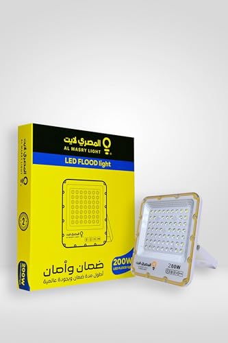 ALMASRY LIGHT - مصباح كشاف 6500 كلفن، 5000 لومن، للاستخدام الخارجي بتصنيف IP66 لمقاومة المياه والغبار، ضمان لمدة 24 شهر (200 واط) من المصري