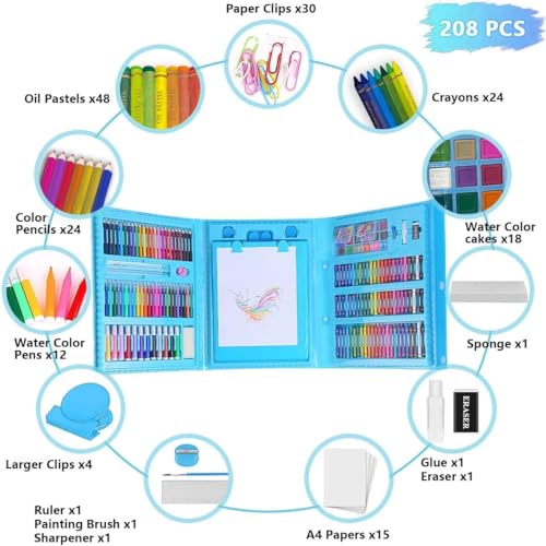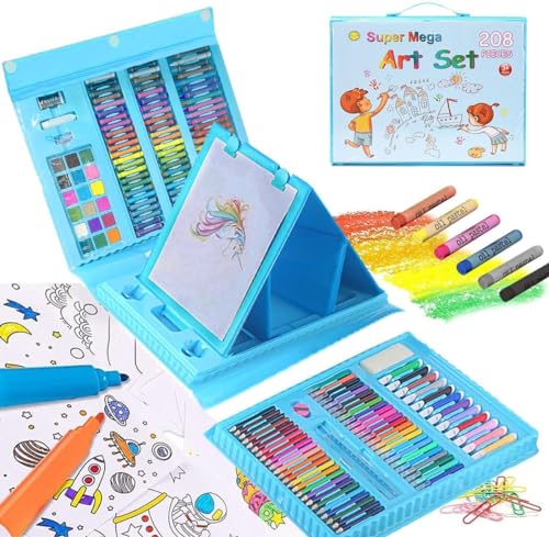 ALMEKAQUZ - مجموعة فنية من 208 قطعة الميكاكوز لوازم الرسم الفنية رسم الفنانين مع شنطة تخزين محمولة هدية للبنات والاولاد