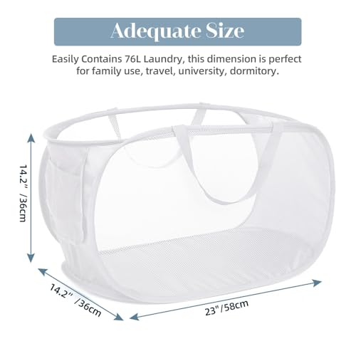 - 【تصميم معزز مطور: تستخدم سلة الغسيل المنبثقة شبكة قوية أكثر كثافة وربطًا قويًا، وكلا مقابض الحمل مفاصل معززة، وأكثر متانة ولن تتمزق.