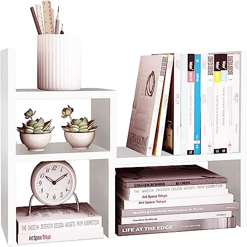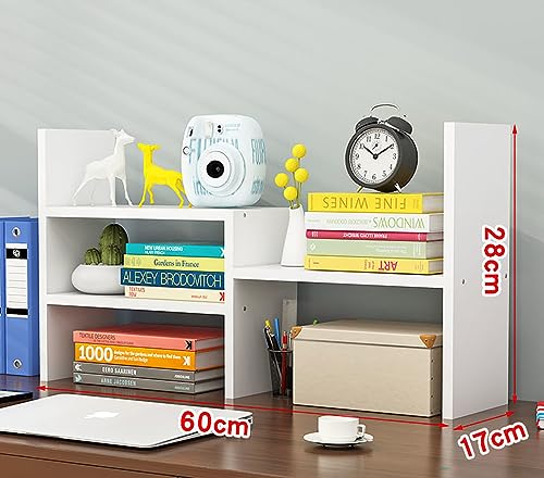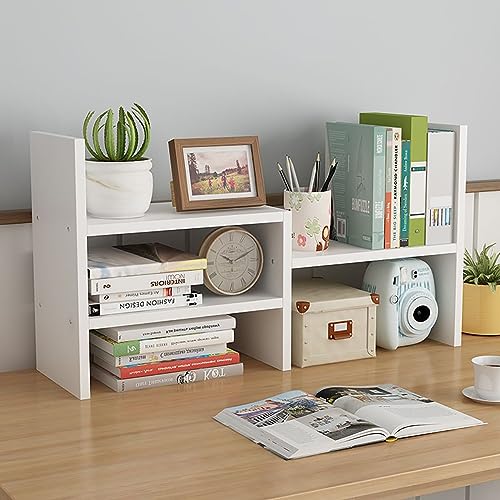 ALMEKAQUZ - رف كتب مكتبي من الميكاكوز، منظم مكتبي خشبي، رف كتب صغير للمكتب، ارفف مكتب صغيرة للمكتب والمنزل (ابيض)
